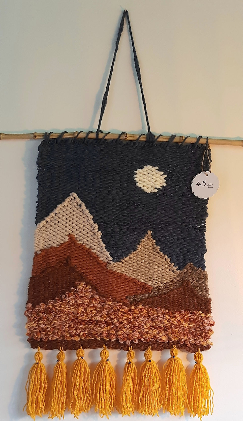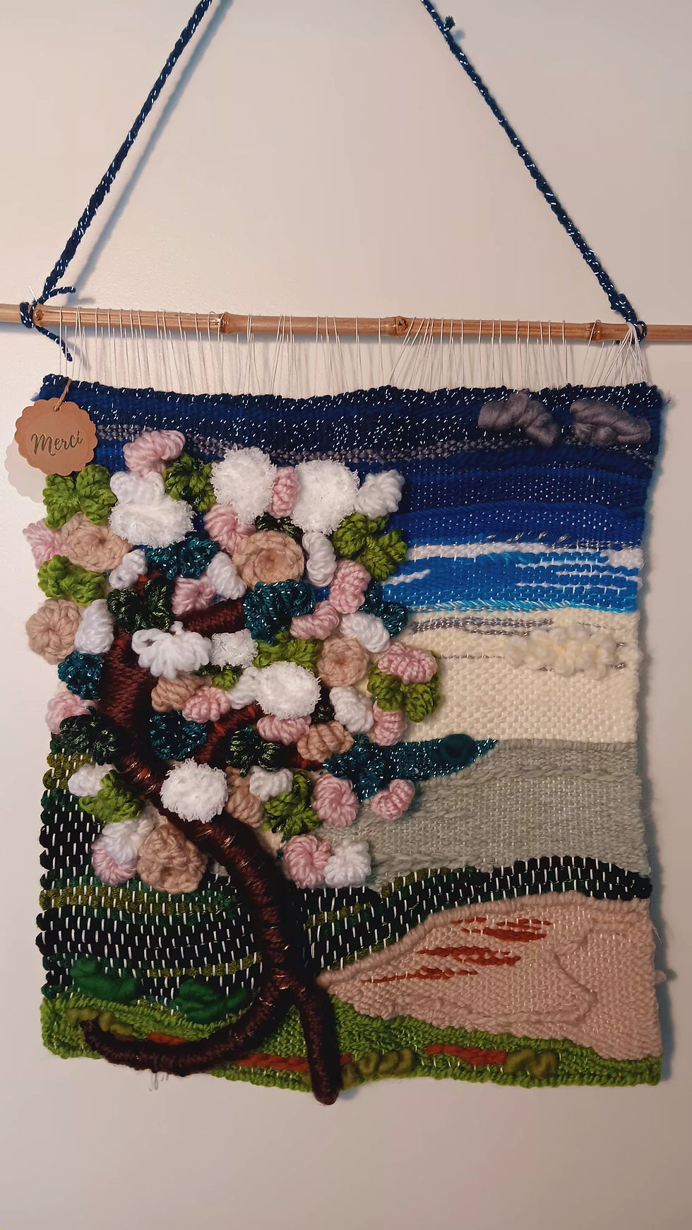 Le panda "trésor de la Chine" et symbole pour le WWF, il est également adoré par les enfants. Cette création mesure 35 cm/68 cm. Son support est bien évidemment une tige de bambou que j'ai vernie. Les pompons sont faits à le main. Les perles sont en bois, et les fleurs en soie. Le temps de travail pour cette création est de 16h30.